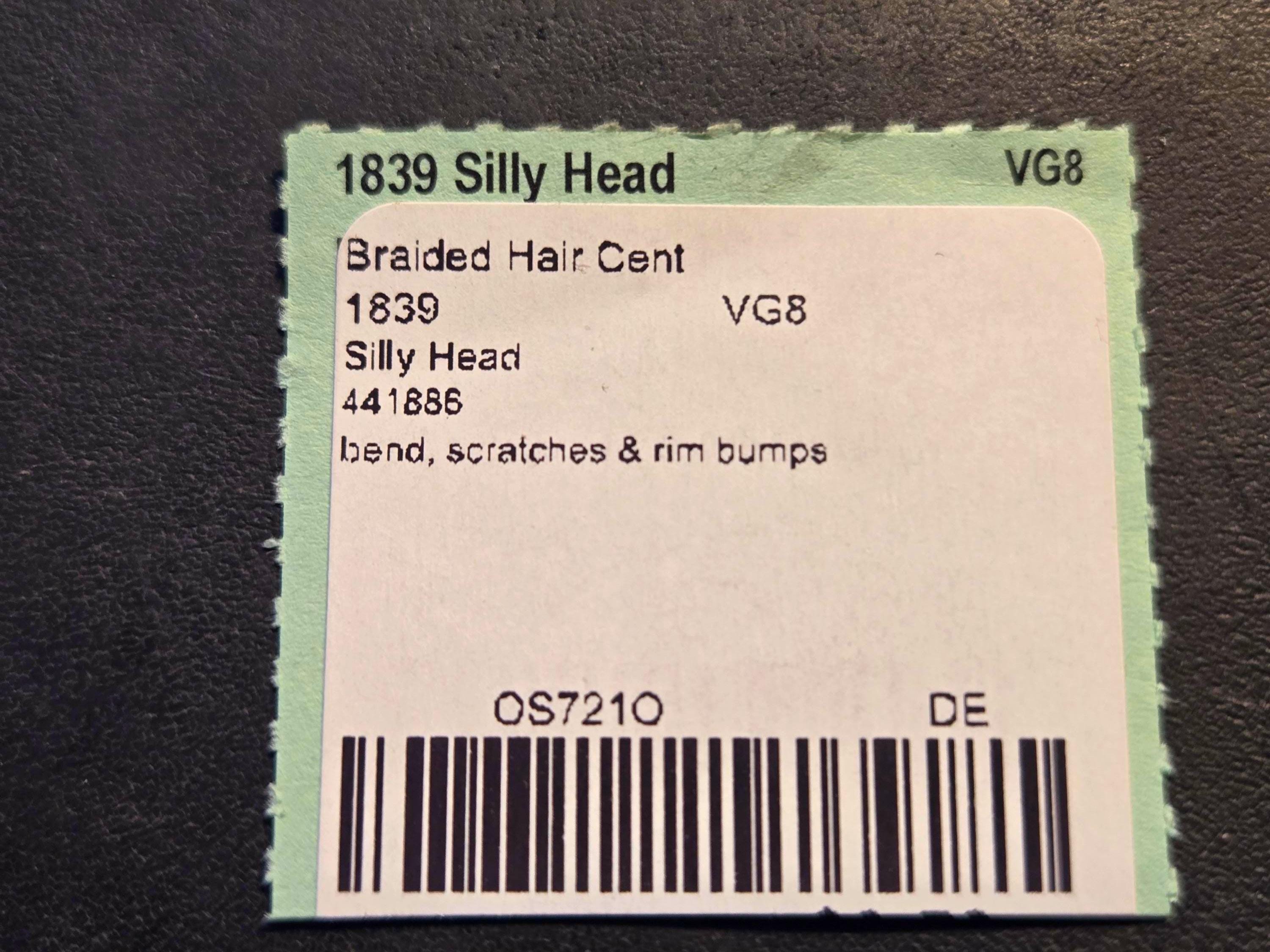 1839 Silly Head Braided Hair Cent