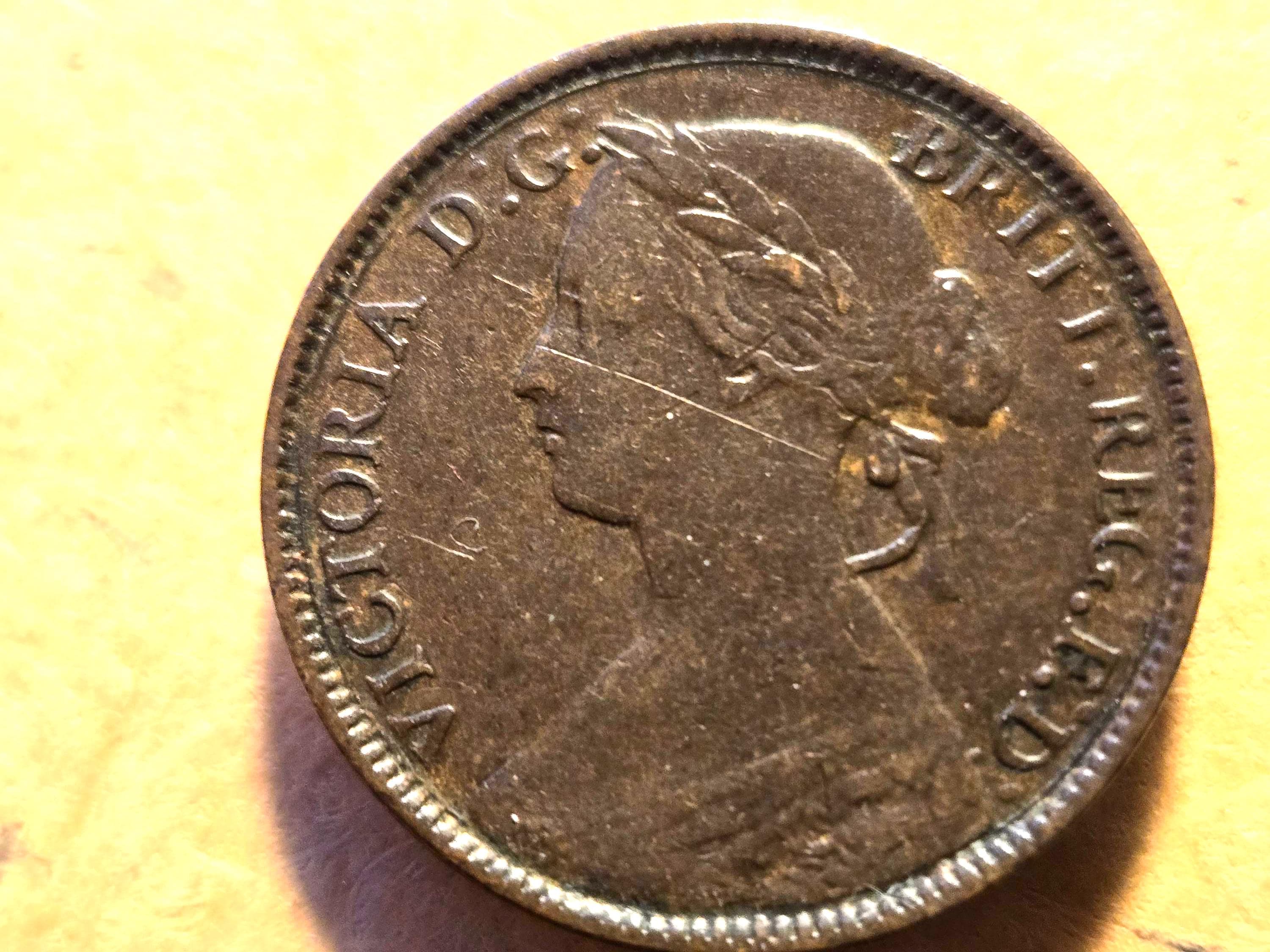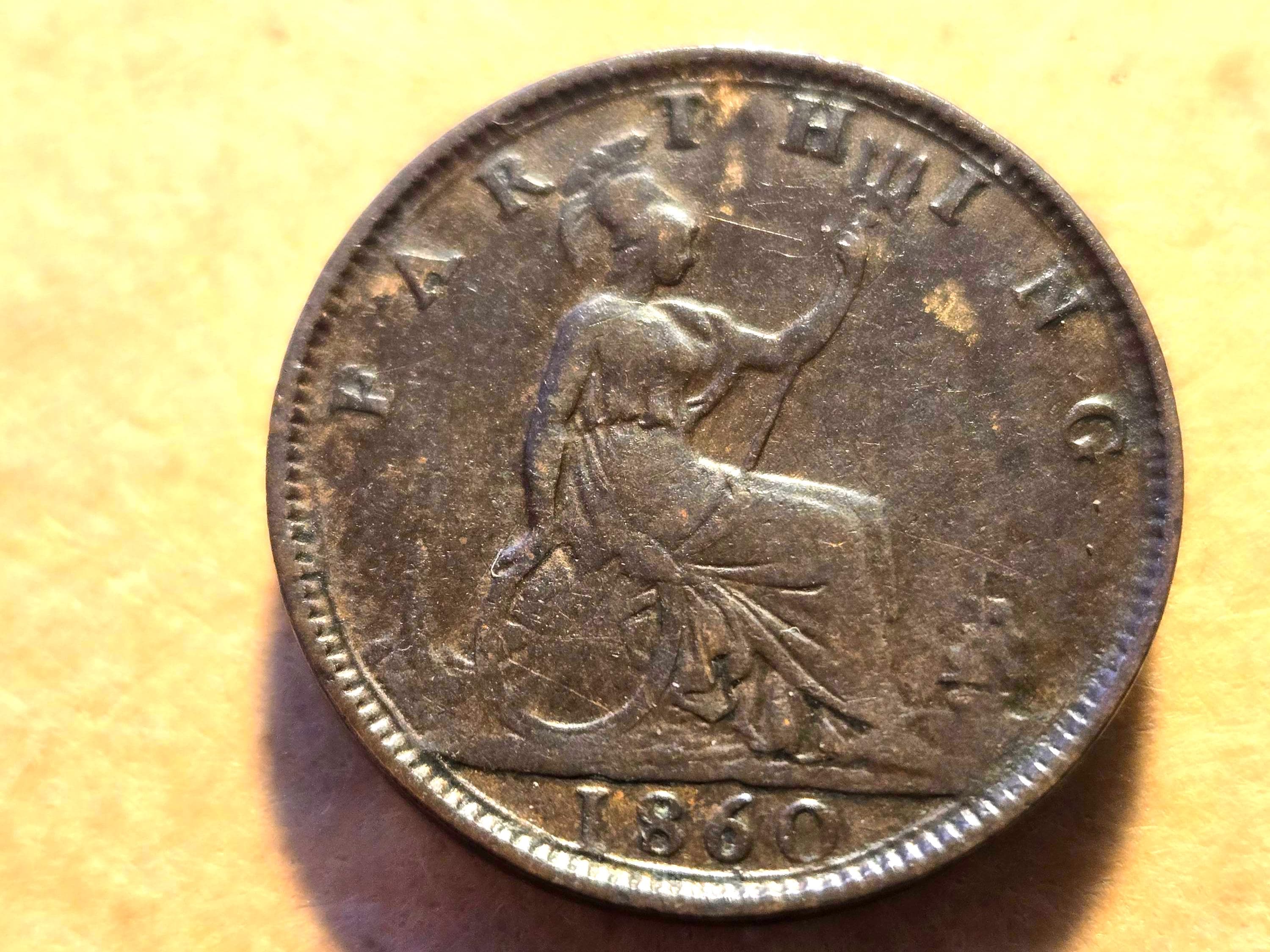1860 Great Britain Farthing Toothed Light Scratch On Head
