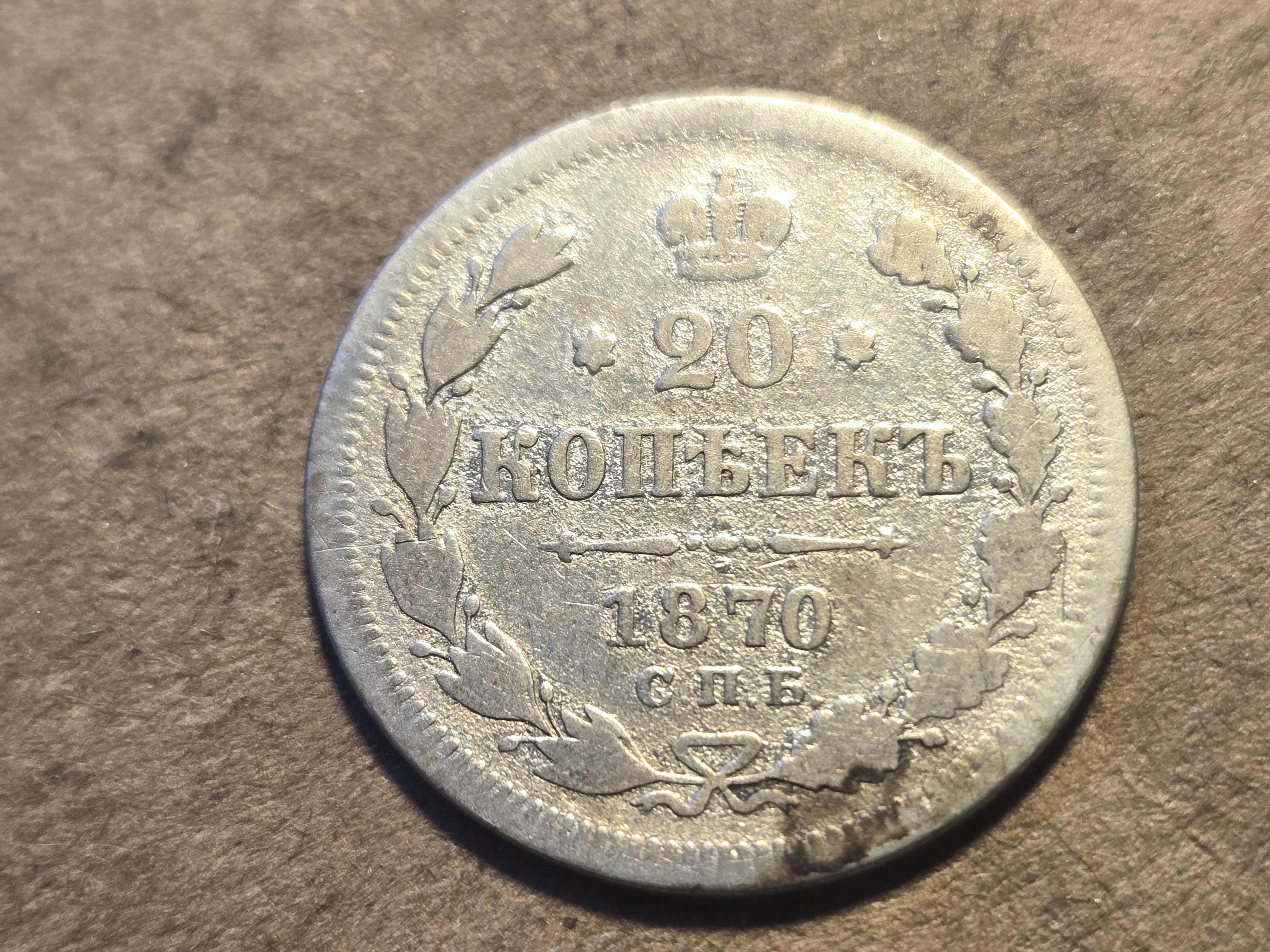 1870 Imperial Russia Silver 20 Kopeks